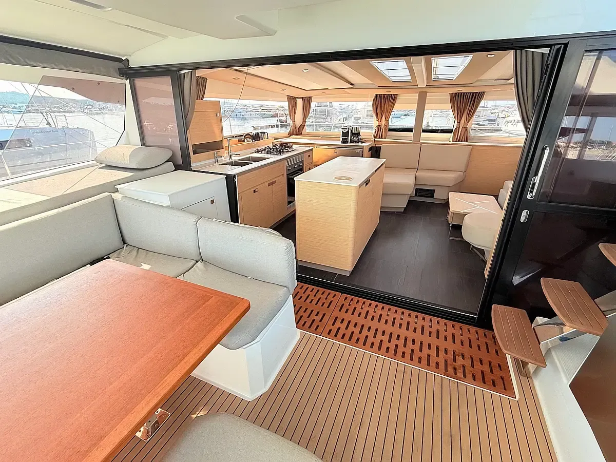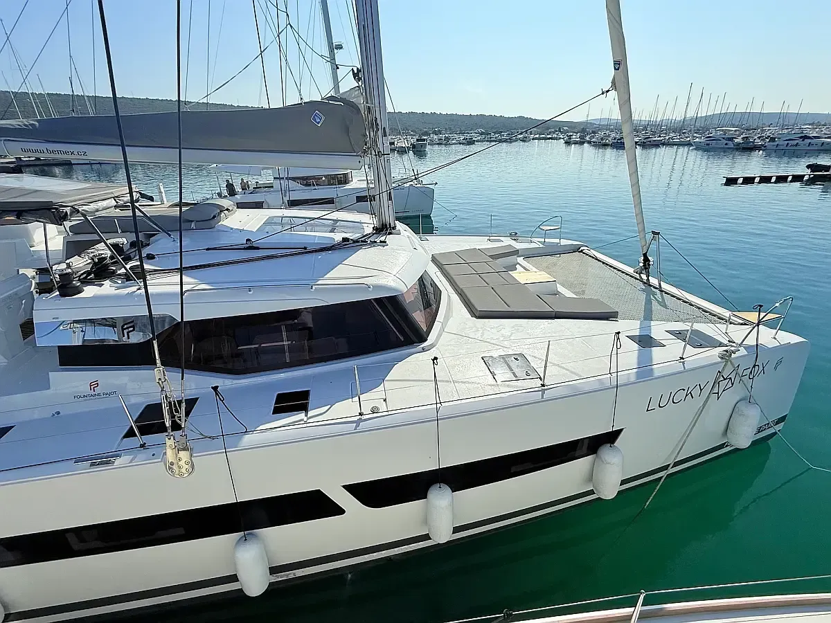 Plavba probíhá na Fountaine Pajot AURA 51, moderním a velmi komfortním katamaránu.
